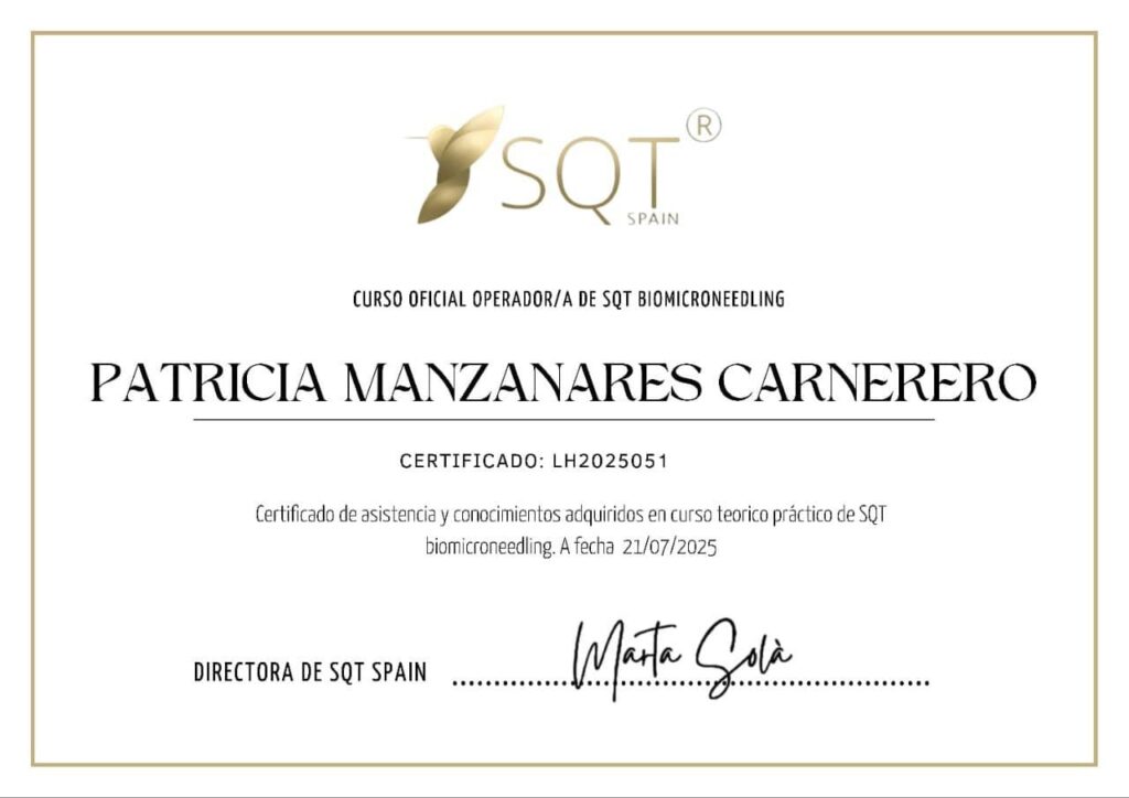 Estoy certificada oficialmente por SQT SPAIN como profesionales especializados en este tratamiento.